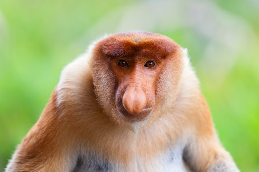 テングザルは、ボルネオ島の固有種。その魅力は、何といっても一目見たら忘れられないユニークな顔立ちです。